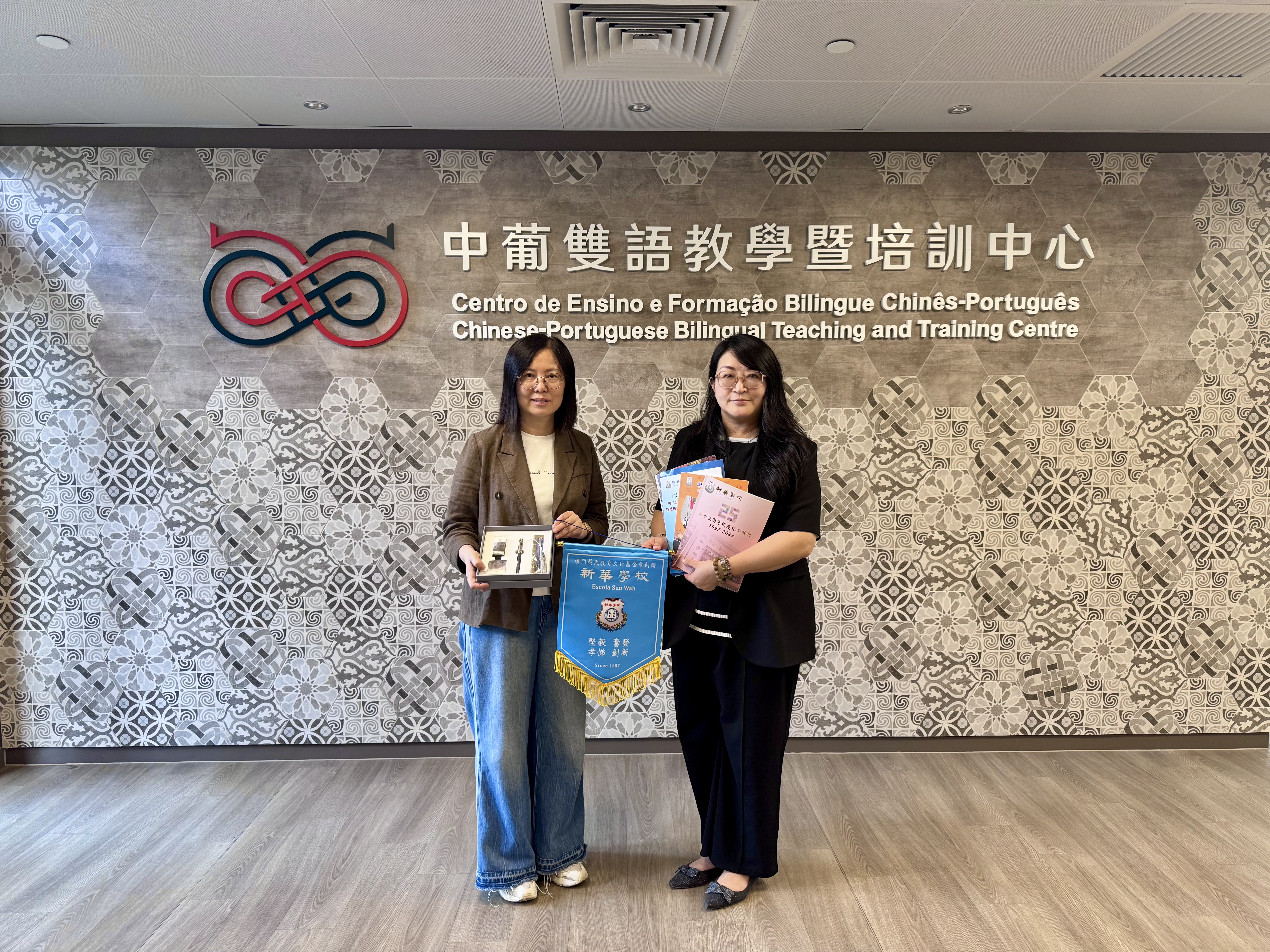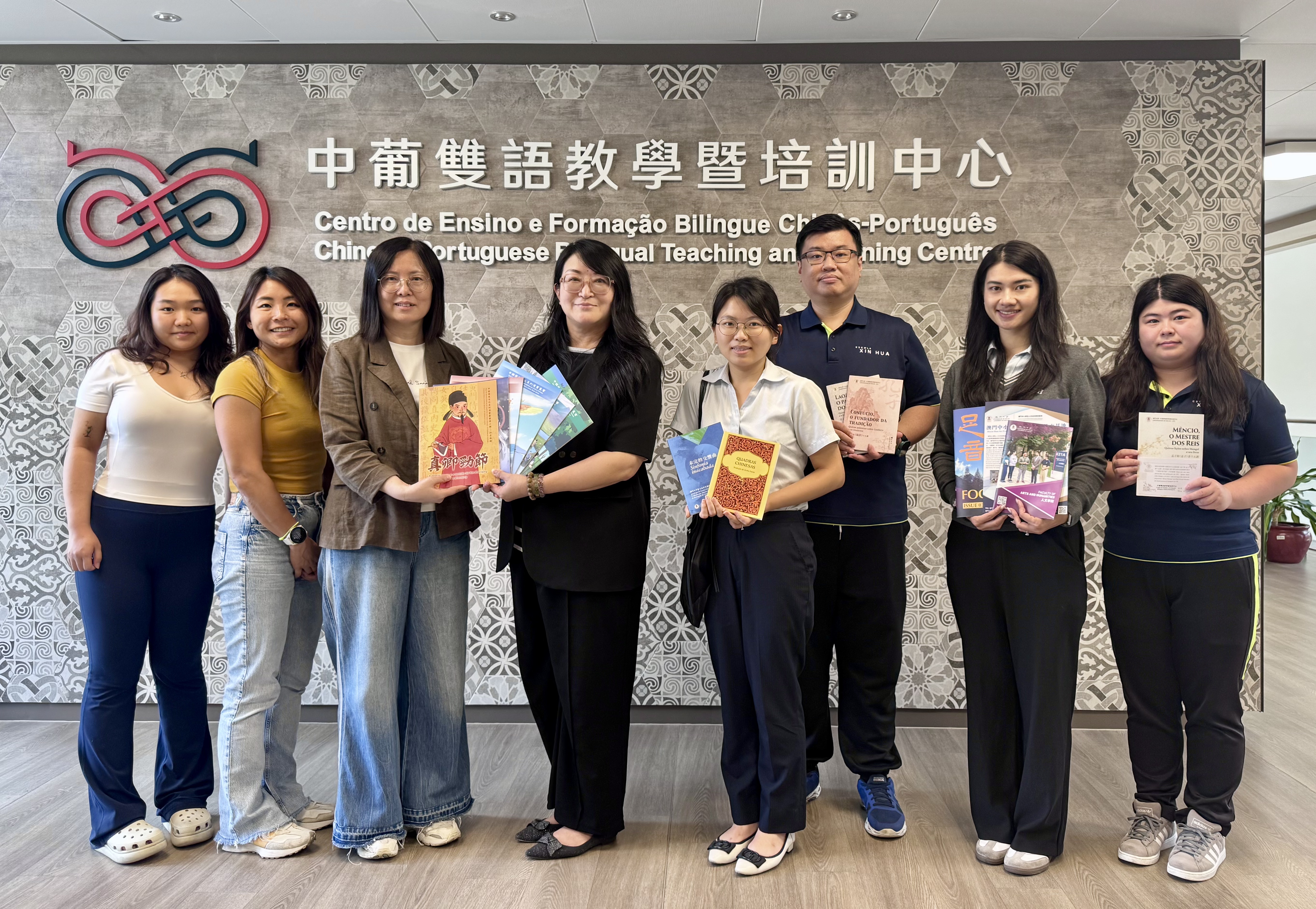 5月19日上午,中葡雙語教學暨培訓中心主任張靜教授在我校崇文樓接待了澳門新華學校院長何宇及葡語教學代表教師團隊,商討合作計劃以及為即將舉行的首屆“葡韻杯”中葡歌詞翻譯大賽的章程細節定案。